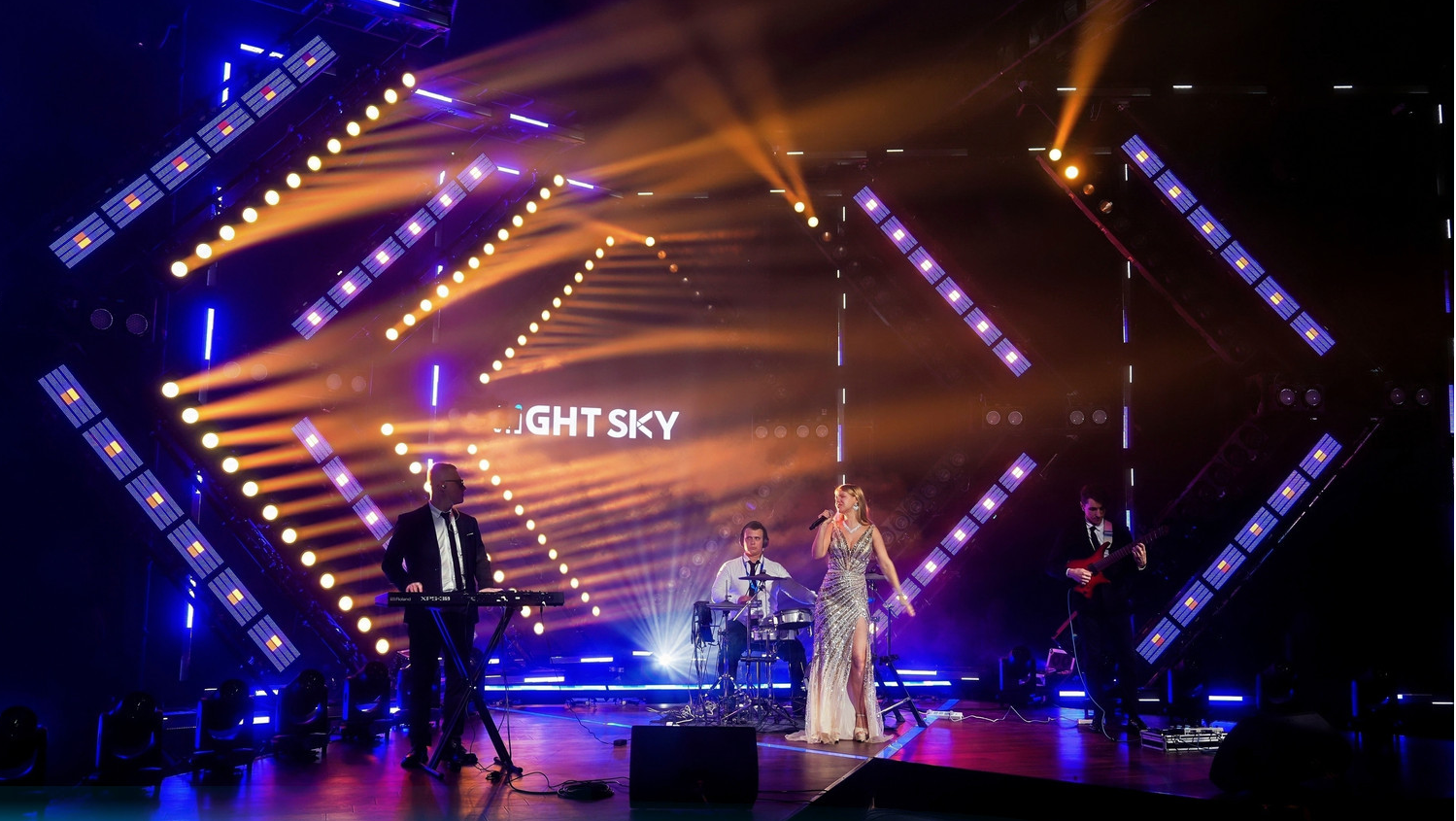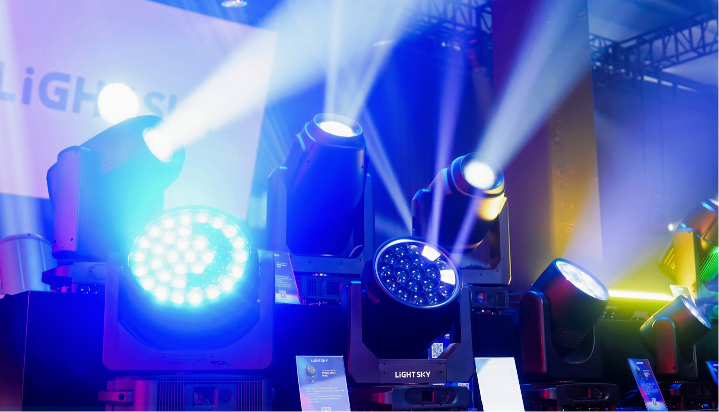 At the center of the booth, a continuous lighting show accompanied live band performances, transforming the space into a dynamic stage environment. Rather than presenting fixtures individually, LiGHTSKY demonstrated how lighting systems interact in real stage scenarios — where structure, color, movement, and rhythm combine to create a unified visual language.