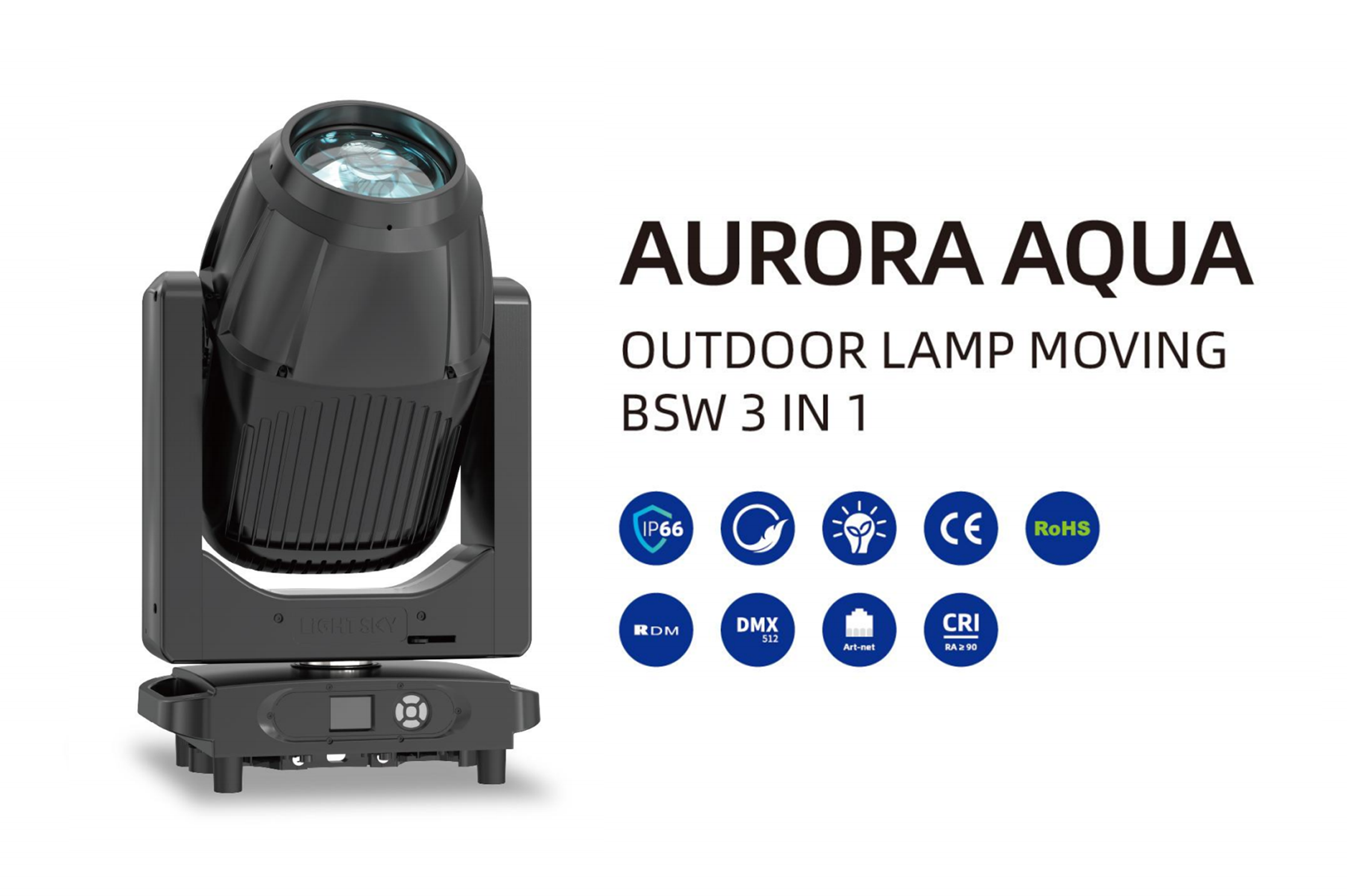 The AURORA AQUA, an upgraded waterproof version of LiGHT SKY’s widely recognized AURORA, features enhanced optical systems, dynamic prism combinations, and DTCS™ (Dynamic Thermal Control System) intelligent thermal control for extended lamp life and stable performance.