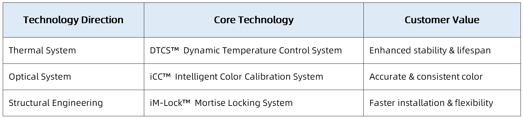 In recent years, LiGHT SKY has introduced several core technologies — DTCS™, iCC™, and iM-Lock™ — forming the foundation of the LiGHT SKY Innovation Technology Framework, designed to continuously enhance stability, precision, and efficiency in stage lighting systems.
